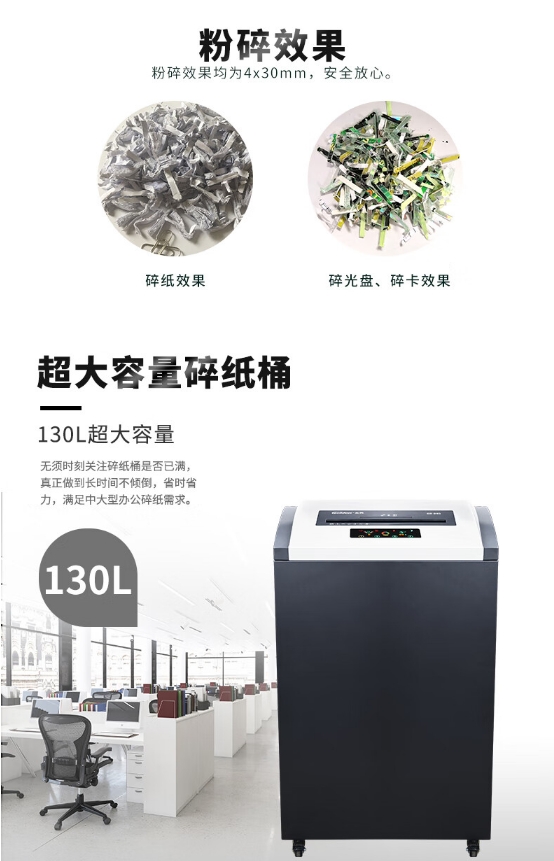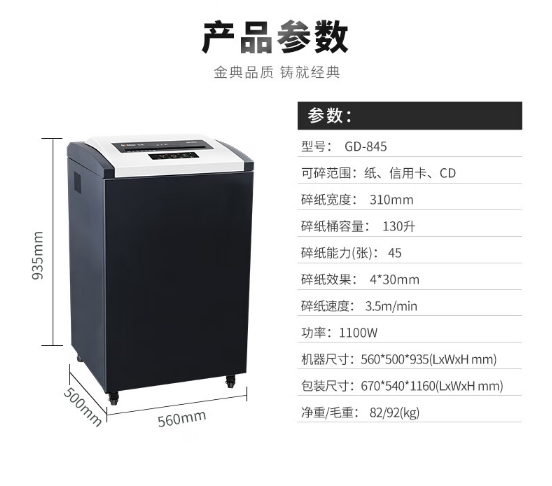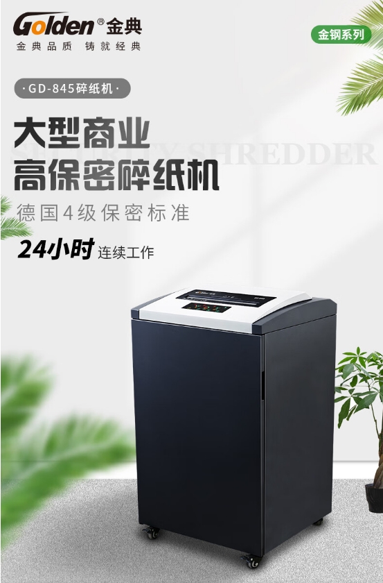 商品名稱(chēng):金典(GOLDEN) GD-845 碎紙機(jī) 4級(jí)保密連碎24小時(shí)單次45張130L可碎紙卡光盤(pán)CD