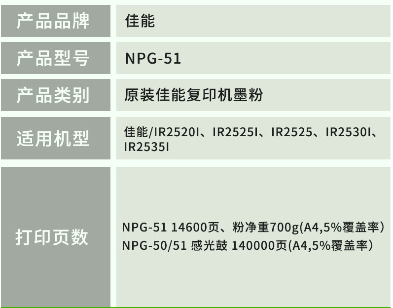 商品名稱:佳能2525i墨粉NPG-51粉盒 佳能復(fù)合機(jī)原裝耗材 NPG-51BK 黑色墨粉