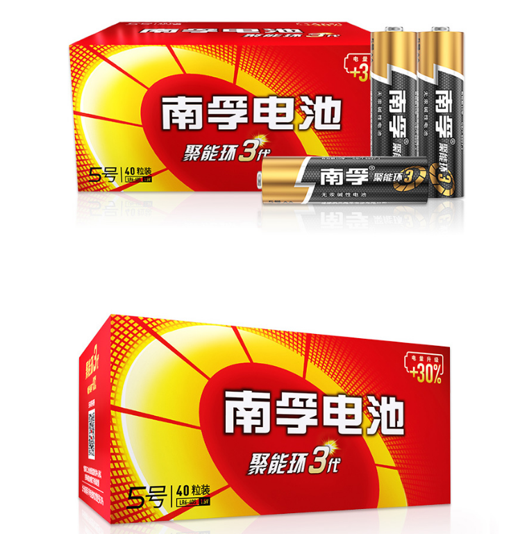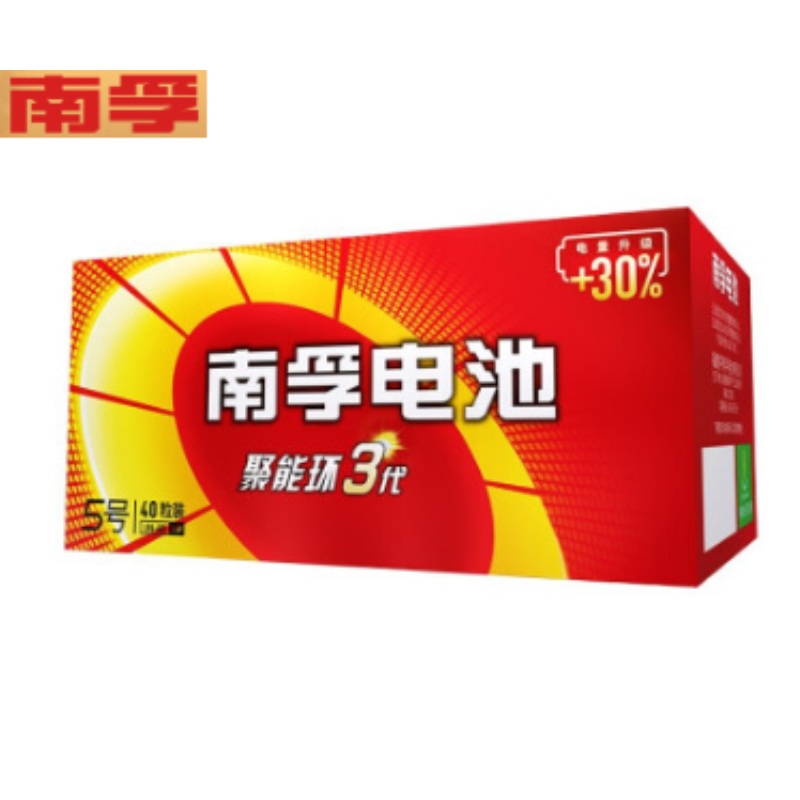 南孚(NANFU)5號堿性電池40粒 聚能環(huán)3代 適用于兒童玩具/血壓計/血糖儀/電子門鎖/鼠標/遙控器等 南孚電池LR6AA