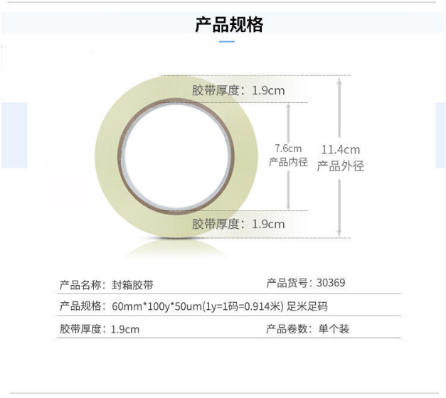商品名稱:得力(deli)高品質(zhì)高透明封箱膠帶/打包膠帶 60mm*100y*50um(91.4m/卷) 單卷裝 辦公用品 得力(deli)膠帶30369