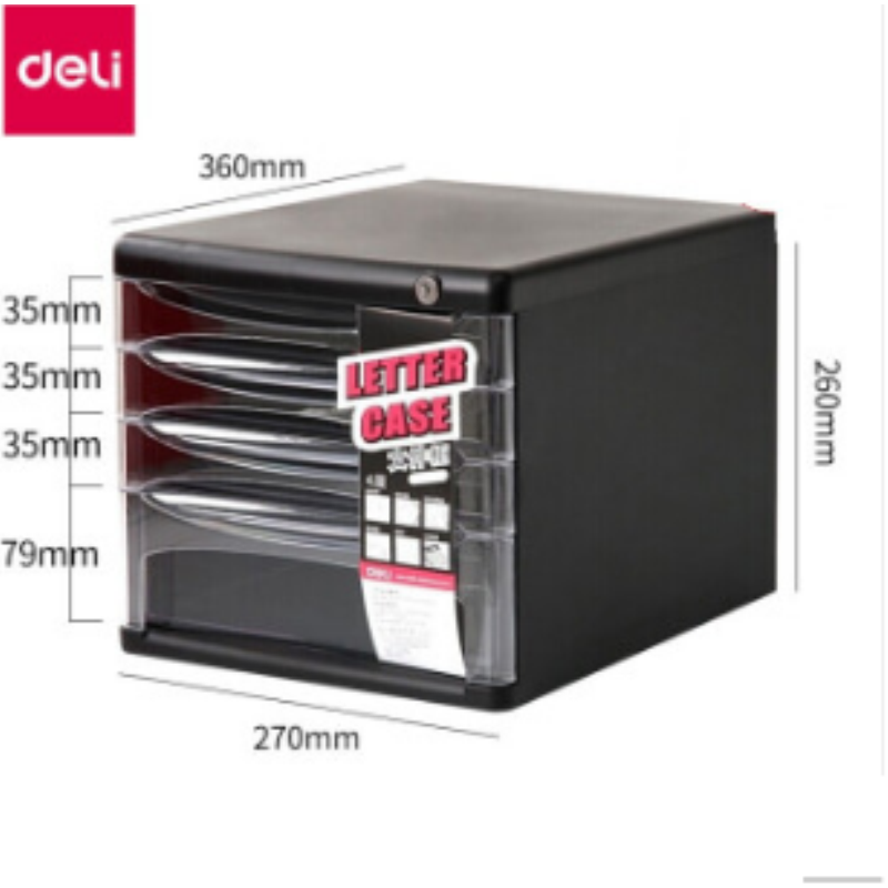 商品名稱:得力(deli) 桌面資料整理文件柜塑料抽屜柜辦公用品 得力(deli)文件柜4層帶鎖 9794