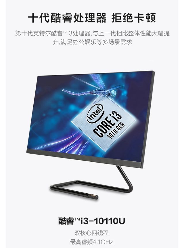 聯(lián)想(Lenovo)AIO 520C 微邊框一體機(jī)臺式電腦 商用辦公電腦21.5英寸 十代i3-10110U 8G 256G固態(tài) 聯(lián)想AIO 520C一體機(jī)電腦黑白色