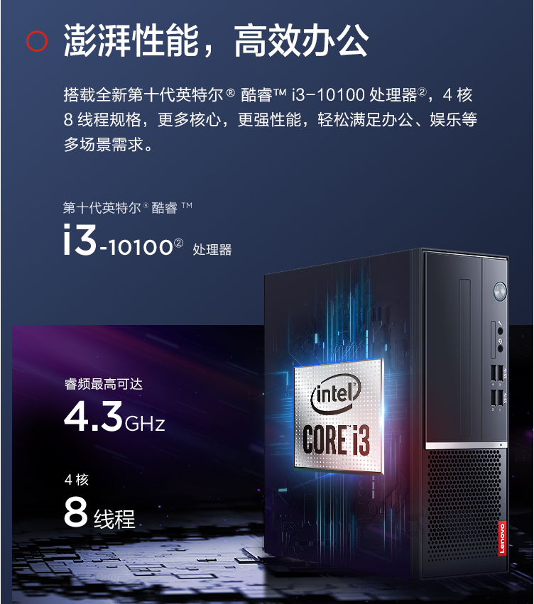 聯(lián)想(Lenovo)揚天M4000q英特爾酷睿i3 商用臺式機電腦整機(i3-10100 8G 128GB固態(tài)+1T 鍵鼠)+21.5英寸