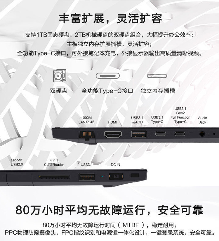 特性:指紋識(shí)別,雙硬盤位,長(zhǎng)壽命電池